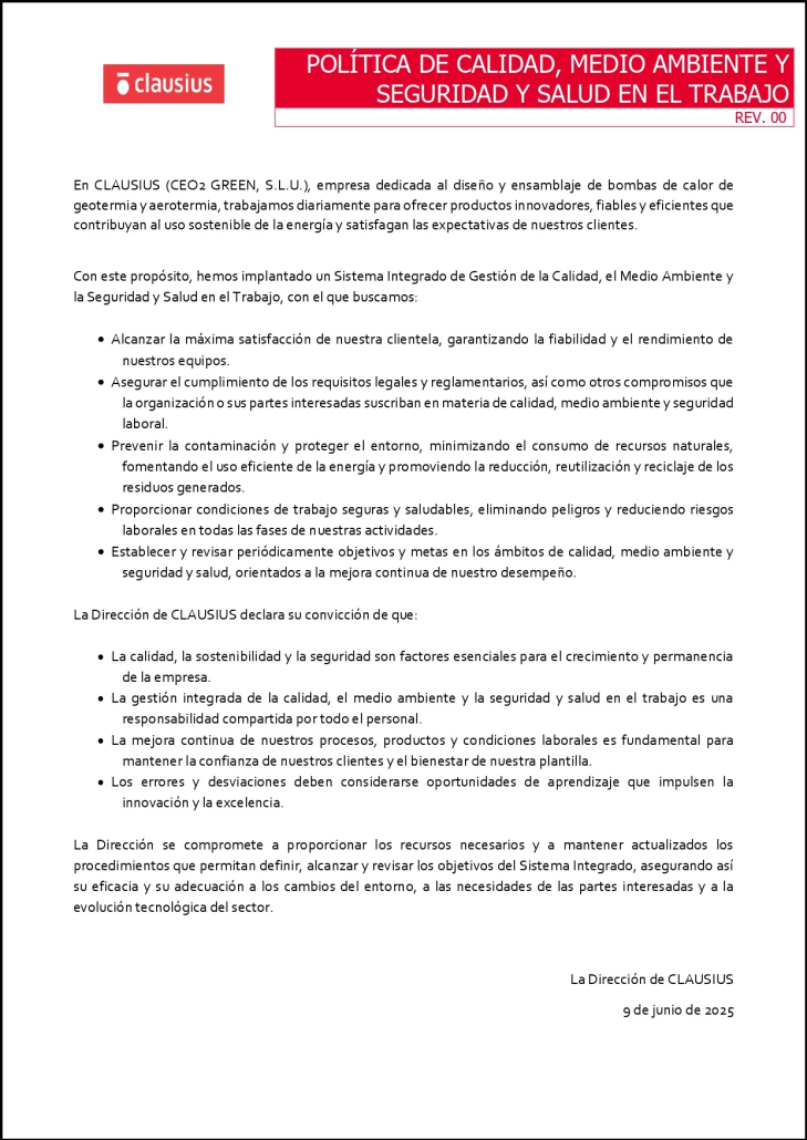 Política de calidad, medio ambiente y seguridad y salud en el trabajo