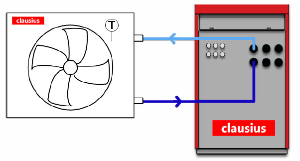 Clausius air source system (CLAUSIUS Air System) is based on maintaining all the advantages of ground source systems, replacing only the ground collector system by a simple, efficient, reliable, robust and long-lasting air collector system.