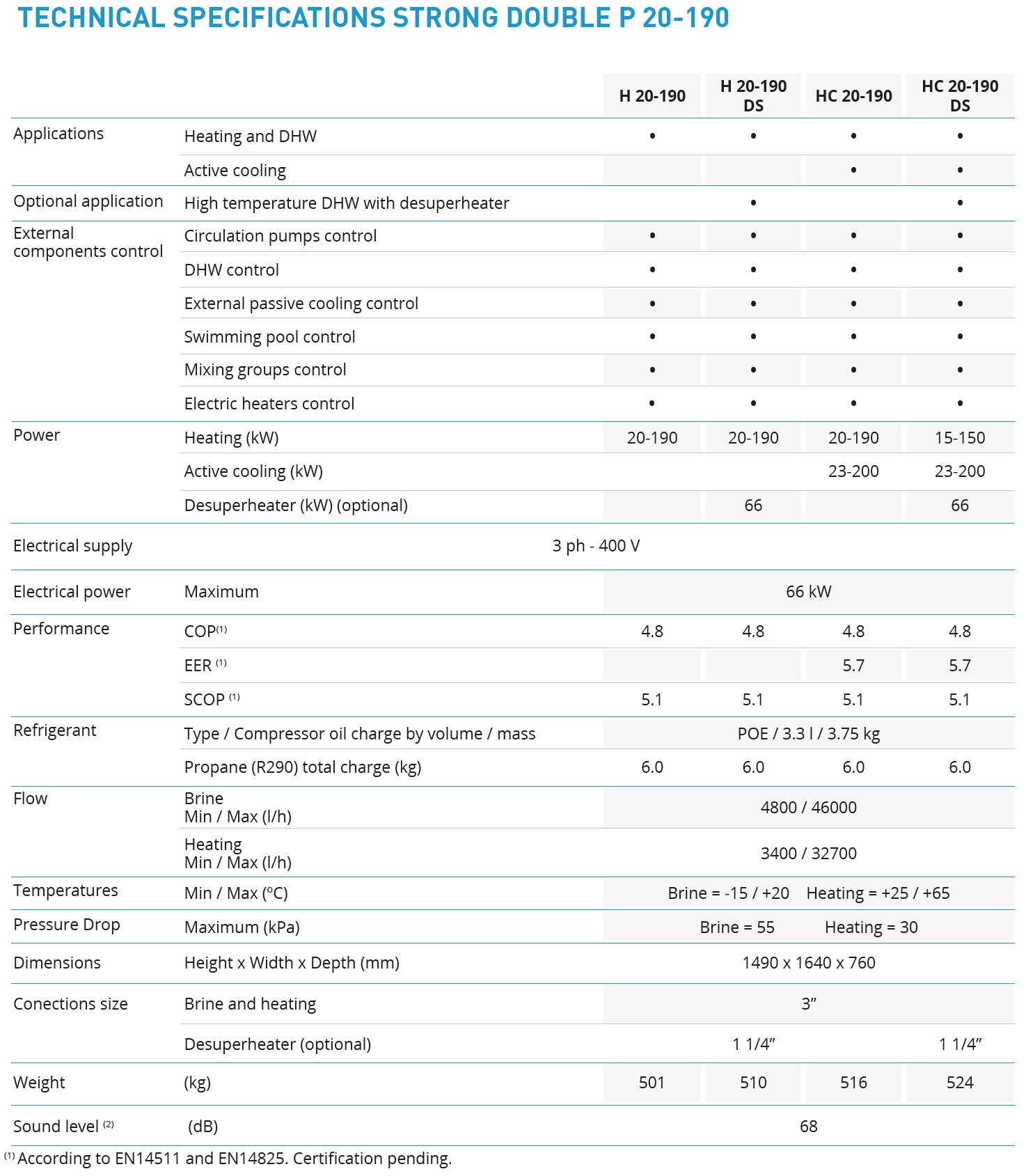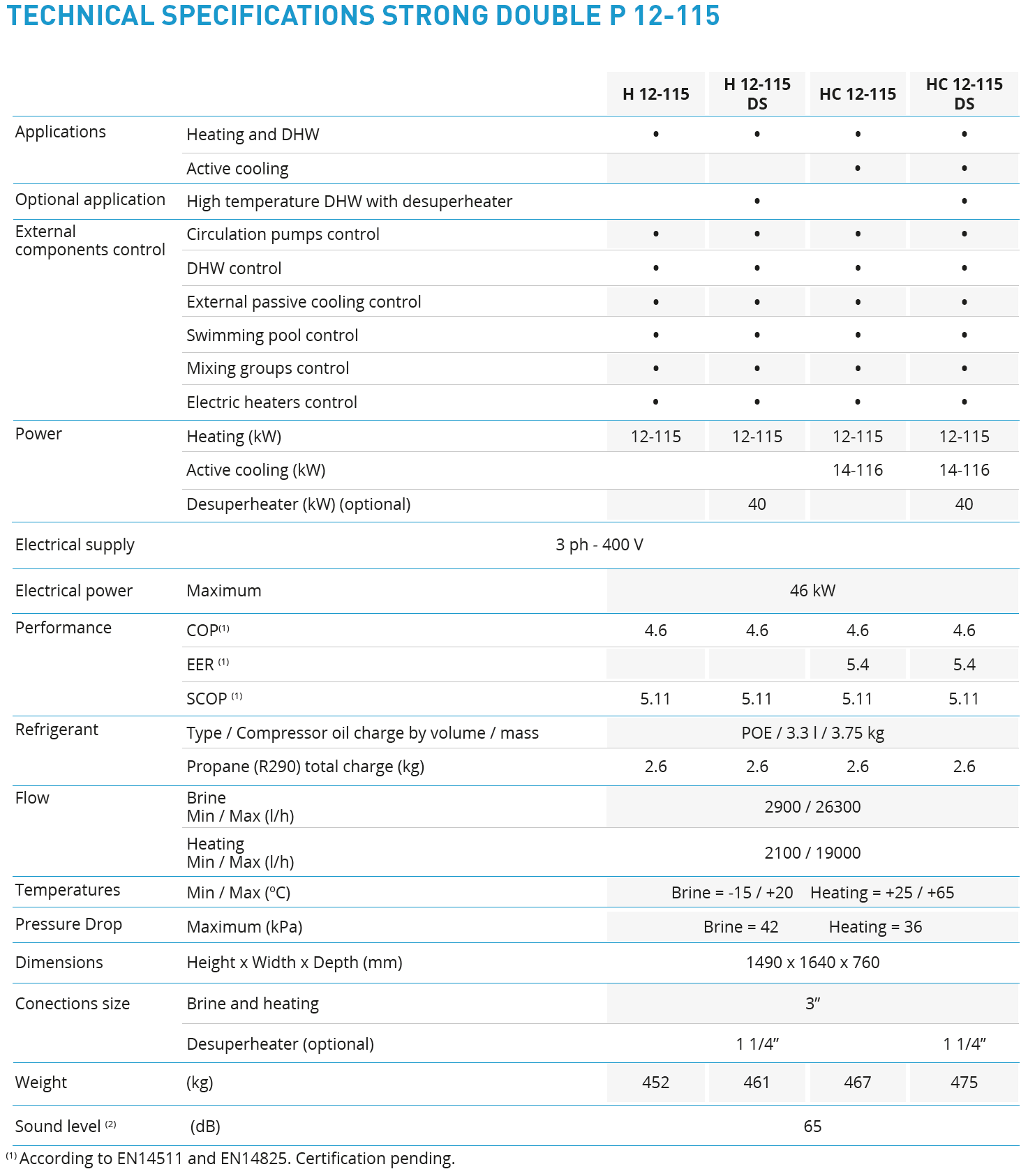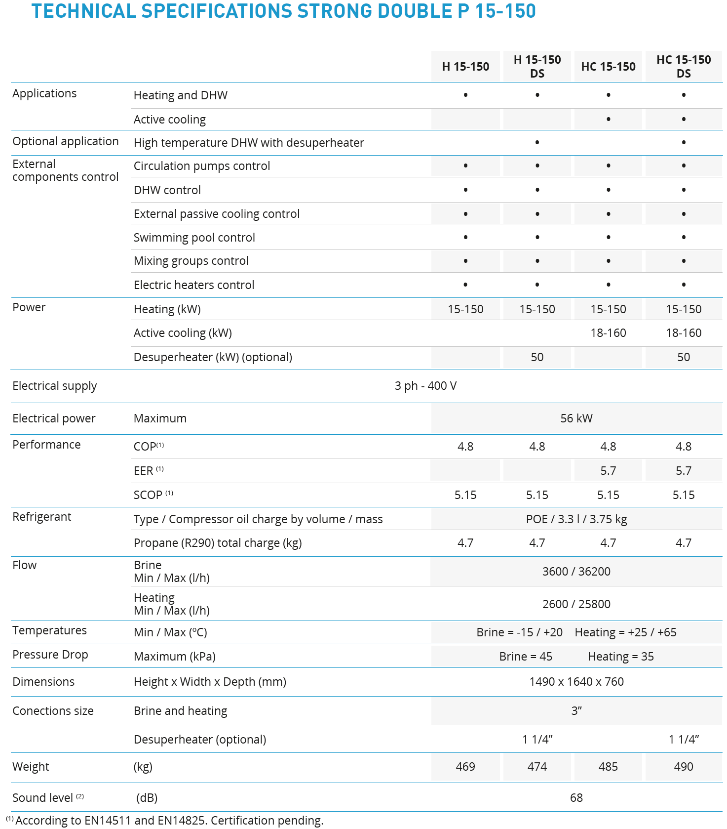 • COPs 4.6 / 4.8 / 4.8, according to EN14511